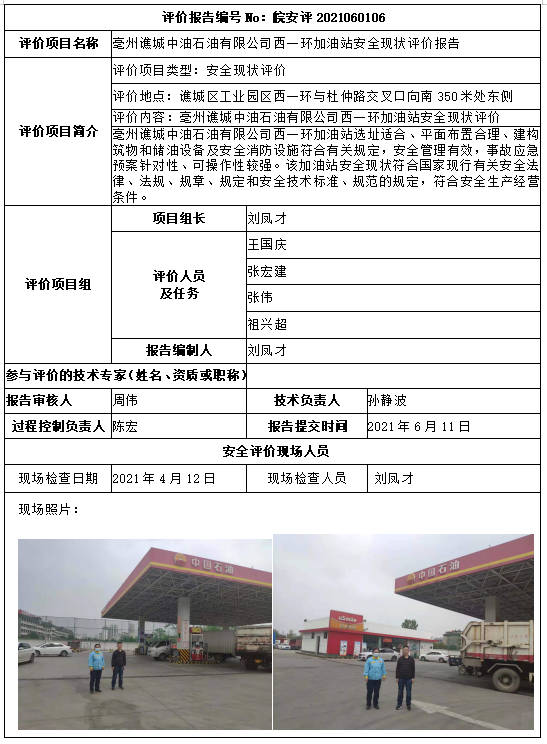 亳州譙城中油石油有限公司西一環(huán)加油站安全現(xiàn)狀評價(jià)報(bào)告
