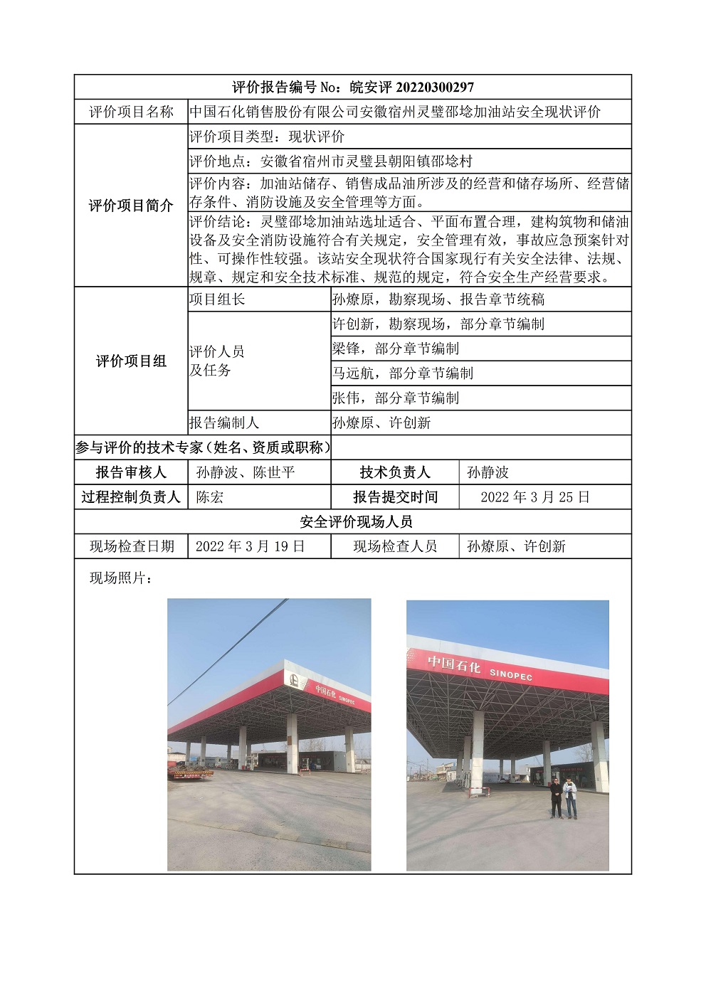 中國(guó)石化銷(xiāo)售股份有限公司安徽宿州靈璧邵埝加油站安全現(xiàn)狀評(píng)價(jià)