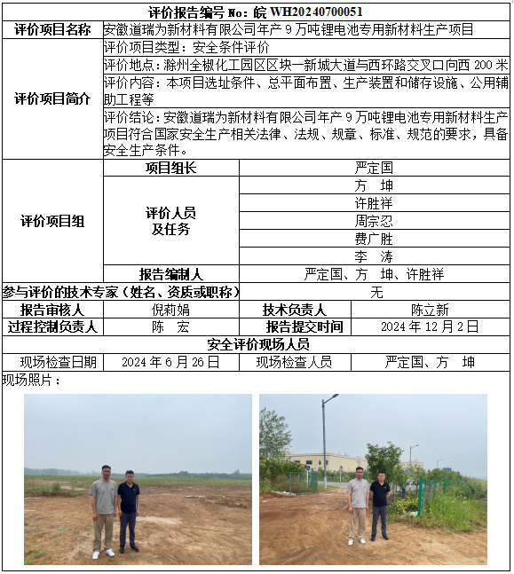 安徽道瑞為新材料有限公司年產(chǎn)9萬噸鋰電池專用新材料生產(chǎn)項(xiàng)目
