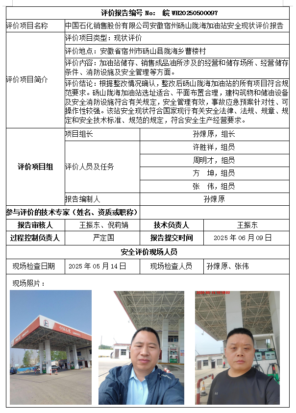 中國石化銷售股份有限公司安徽宿州碭山隴海加油站安全現(xiàn)狀評價報告