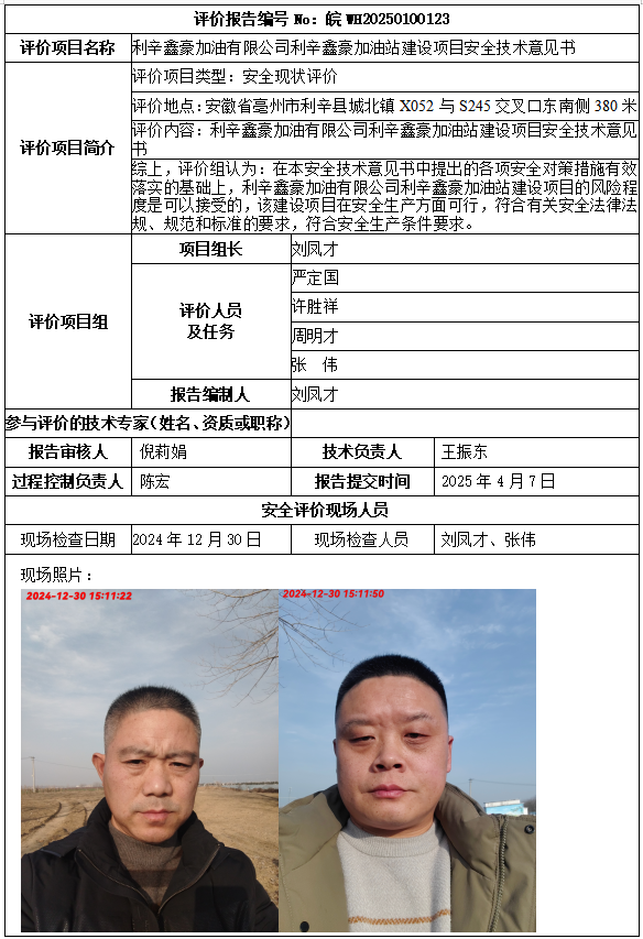 利辛鑫豪加油有限公司利辛鑫豪加油站建設(shè)項目安全技術(shù)意見書