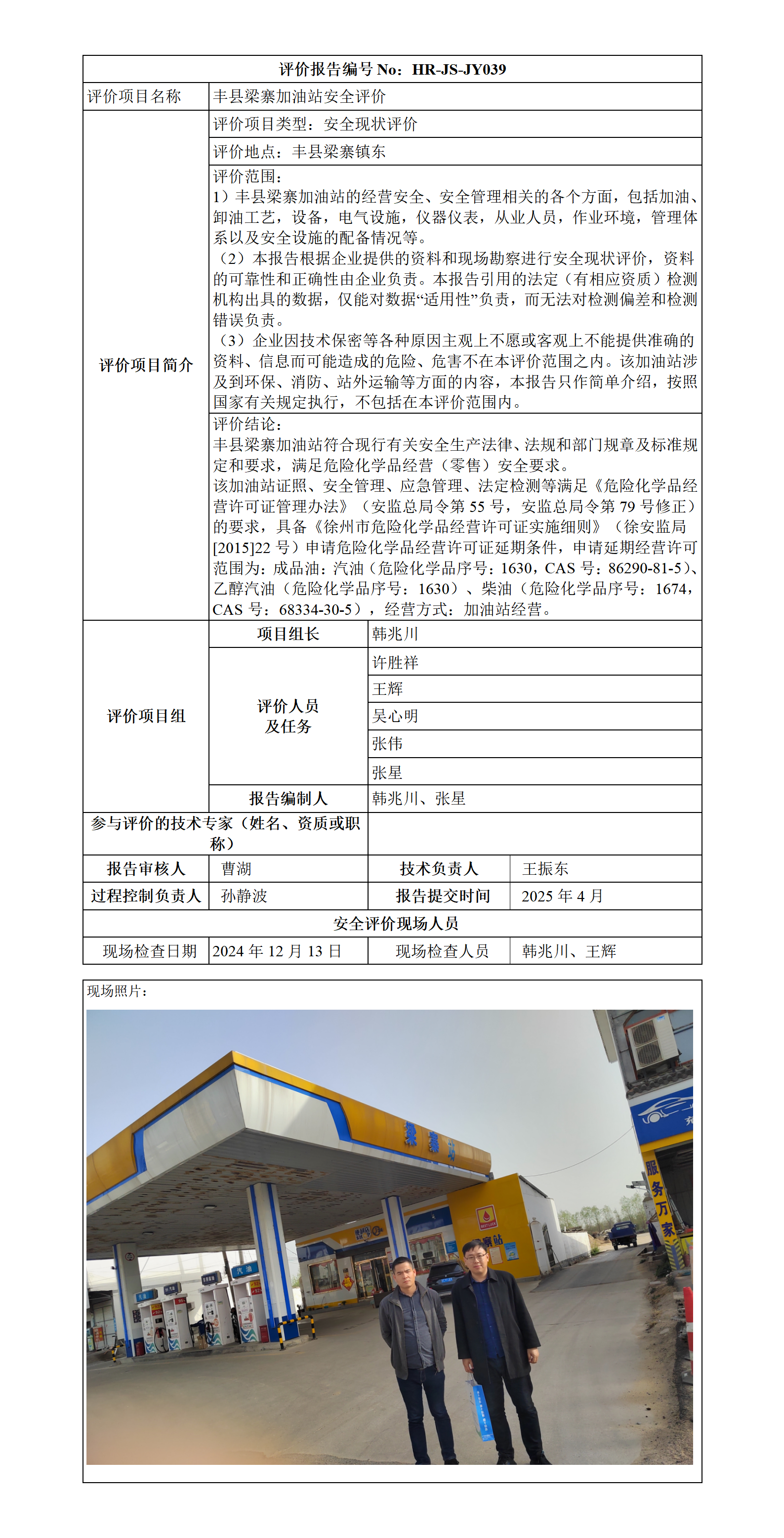 豐縣梁寨加油站安全現(xiàn)狀評價報告