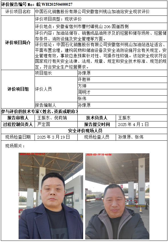 中國石化銷售股份有限公司安徽宿州桃山加油站安全現(xiàn)狀評價(jià)
