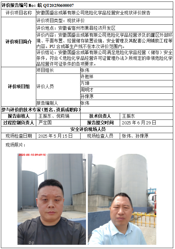 安徽國盛合成革有限公司危險化學(xué)品經(jīng)營安全現(xiàn)狀評價報告