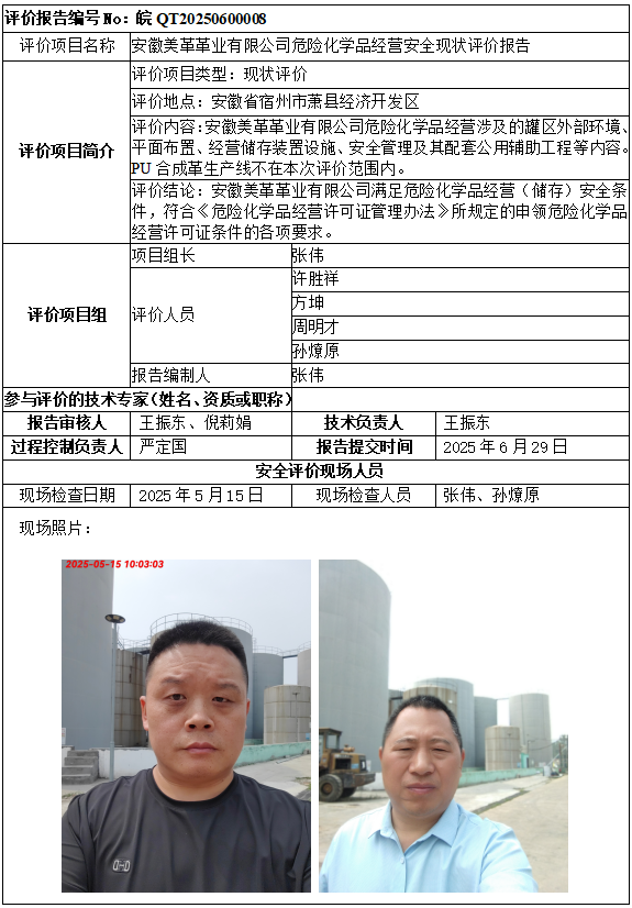 安徽美革革業(yè)有限公司危險(xiǎn)化學(xué)品經(jīng)營安全現(xiàn)狀評價(jià)報(bào)告