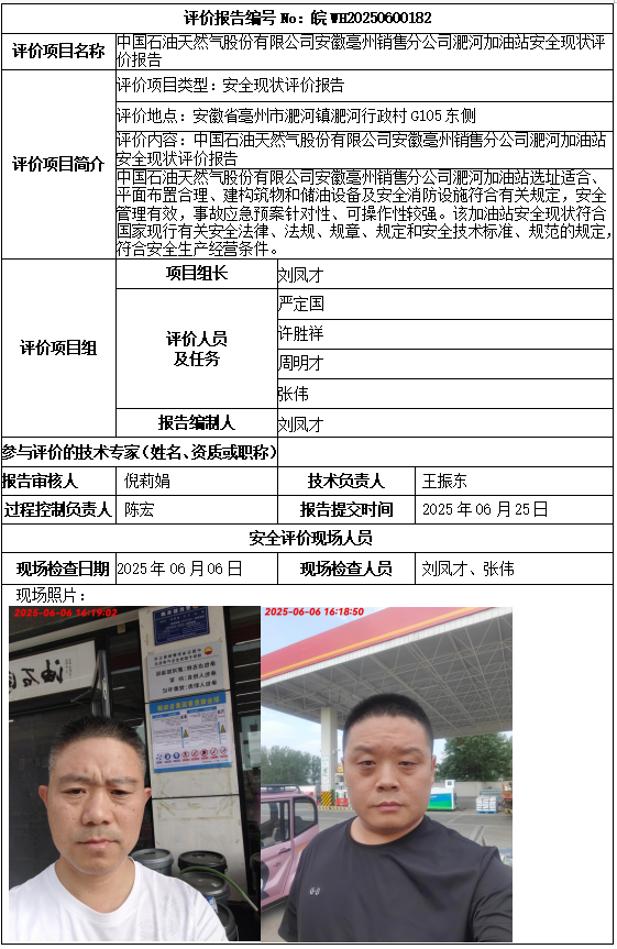 中國(guó)石油天然氣股份有限公司安徽亳州銷售分公司淝河加油站安全現(xiàn)狀評(píng)價(jià)報(bào)告