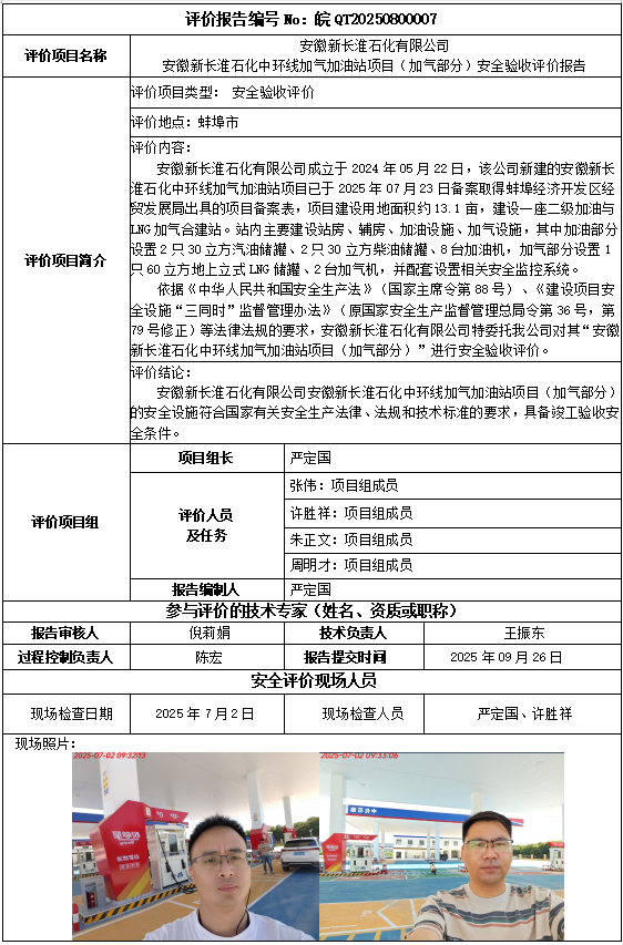安徽新長(zhǎng)淮石化有限公司安徽新長(zhǎng)淮石化中環(huán)線加氣加油站項(xiàng)目(加氣部分)安全驗(yàn)收評(píng)價(jià)報(bào)告