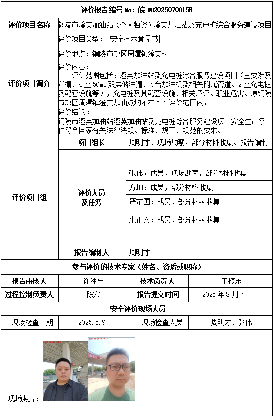 銅陵市澄英加油站(個(gè)人獨(dú)資)澄英加油站及充電樁綜合服務(wù)建設(shè)項(xiàng)目安全技術(shù)意見書