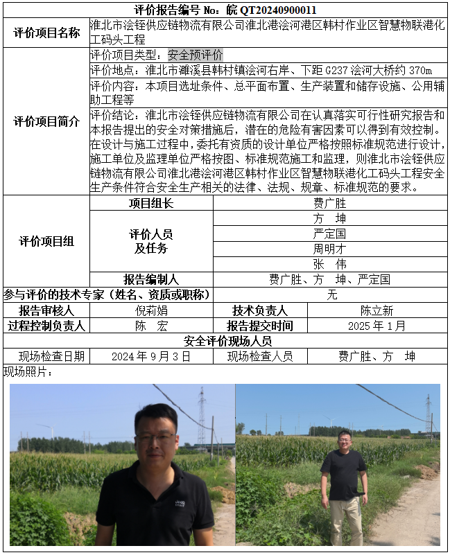 淮北市澮铚供應(yīng)鏈物流有限公司淮北港澮河港區(qū)韓村作業(yè)區(qū)智慧物聯(lián)港化工碼頭工程安全預(yù)評(píng)價(jià)