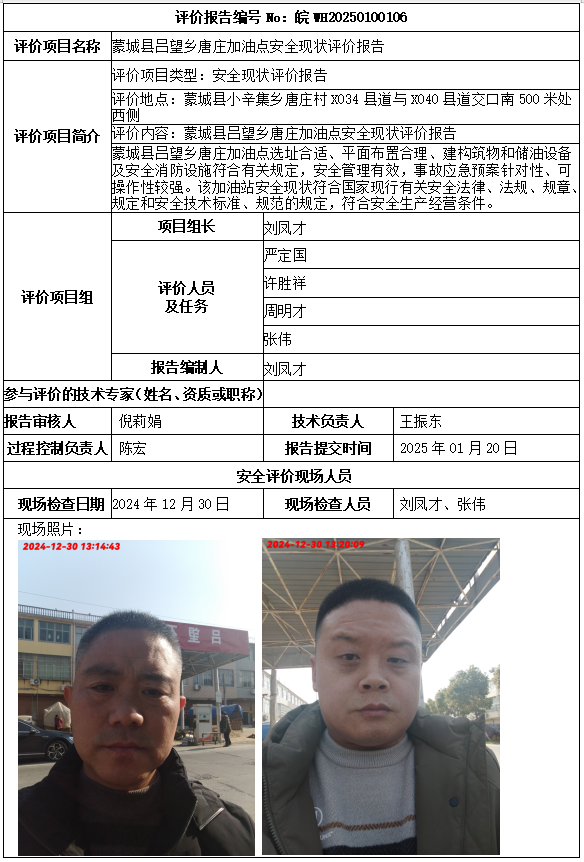 蒙城縣呂望鄉(xiāng)唐莊加油點(diǎn)安全現(xiàn)狀評價報告
