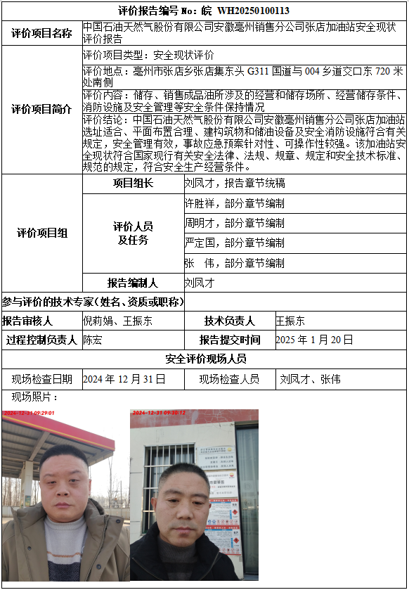 中國石油天然氣股份有限公司安徽亳州銷售分公司張店加油站安全現(xiàn)狀評價報告
