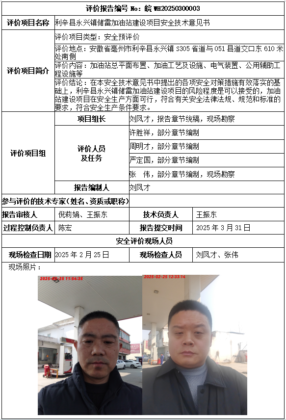 利辛縣永興鎮(zhèn)儲雷加油站建設(shè)項目安全技術(shù)意見書