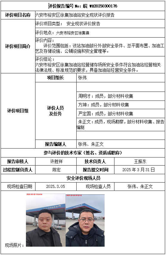 六安市裕安區(qū)徐集加油站安全現(xiàn)狀評價報告