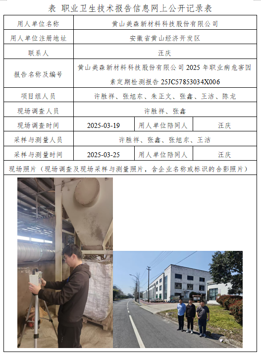 黃山美森新材料科技股份有限公司2025年職業(yè)病危害因素定期檢測報告