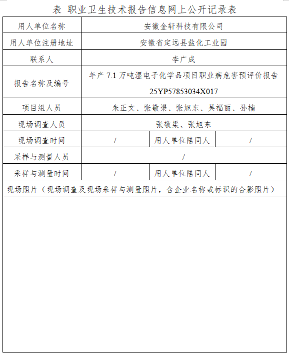 安徽金軒科技有限公司年產(chǎn)7.1萬噸濕電子化學(xué)品項目職業(yè)病危害預(yù)評價報告