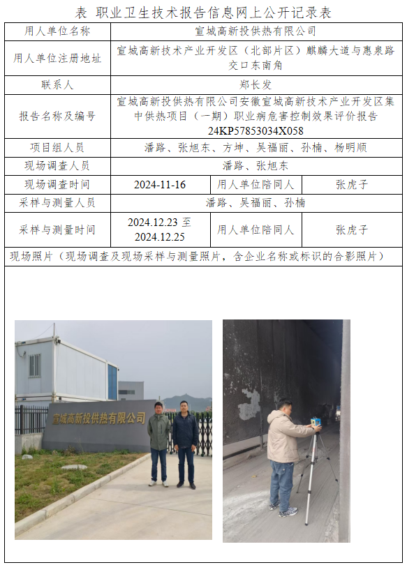 宣城高新投供熱有限公司安徽宣城高新技術(shù)產(chǎn)業(yè)開(kāi)發(fā)區(qū)集中供熱項(xiàng)目(一期)職業(yè)病危害控制效果評(píng)價(jià)報(bào)告