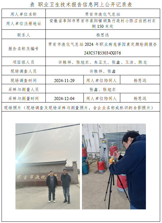界首市液化氣總站2024年職業(yè)病危害因素定期檢測報告