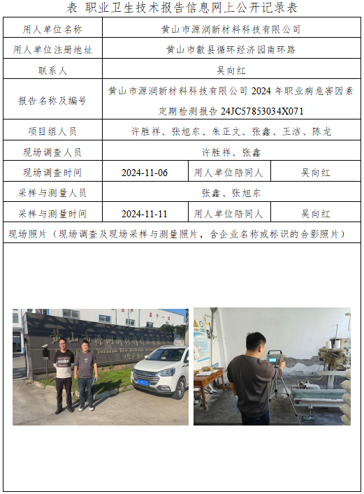 黃山市源潤新材料科技有限公司2024年職業(yè)病危害因素定期檢測報告