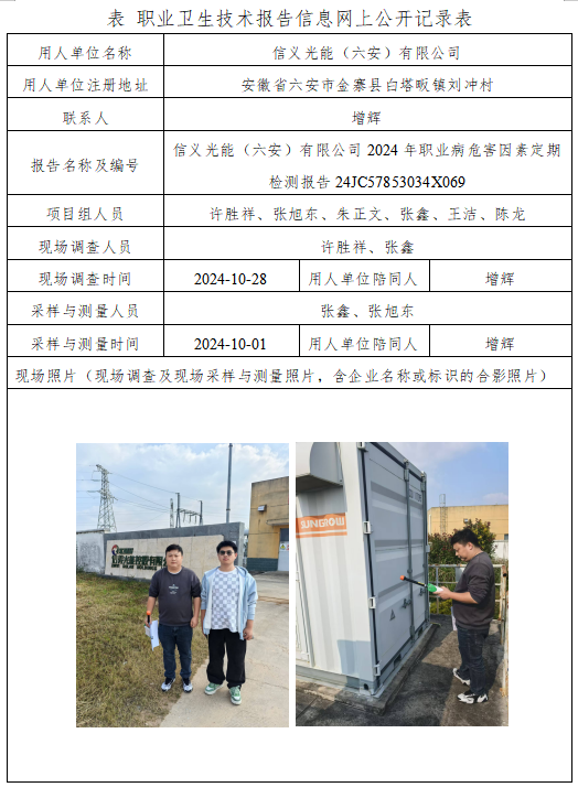 信義光能(六安)有限公司2024年職業(yè)病危害因素定期檢測(cè)報(bào)告